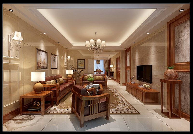 此居室整體采用中性色調,穩重,大氣,卻又不失品位,有令人眼前一亮的感覺。本設計注重細節,墻面加工磚和大理石線條運用簡單干脆利落,在表達時尚的同時不缺乏藝術感。 本案在整個空間上做的大氣唯美,后期通過實木家私來豐富空間,體現風格。